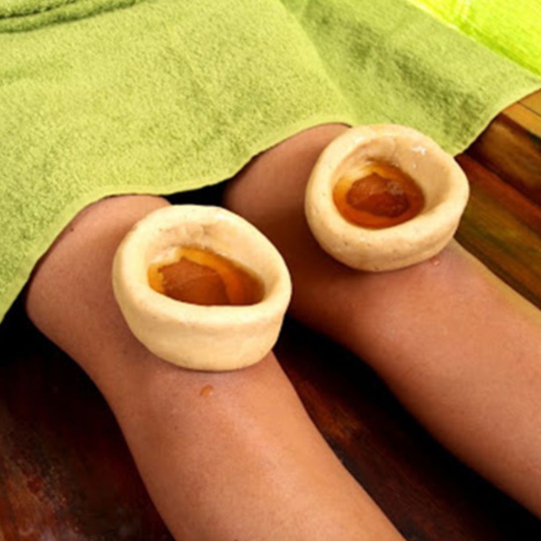 Janu Basti is an Ayurvedic treatment that focuses on the knee joint. The word “Janu” means knee, and “Basti” refers to a container or a dam-like structure. During a Janu Basti treatment session, a ring made of herbal paste is placed around the knee area, and warm medicated oil or herbal decoction is poured and retained within this ring for a specific duration. This allows the herbal properties to penetrate the skin and muscles, providing therapeutic benefits to the knee region.